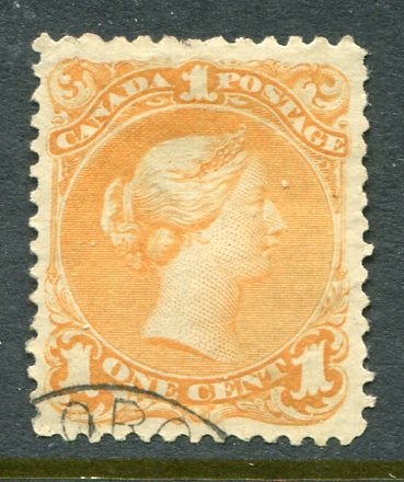Canada: 1868 Queen Victoria Ottawa printing 1c. pale orange-yellow used. signed A. Diena. Sg. 56b