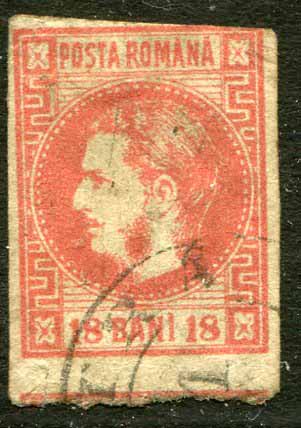 Romania: 1868 Prince Carol new currency 18b thick paper struck by part datestamp. Sg. 67