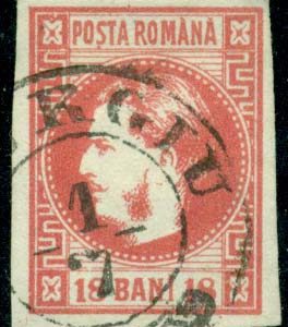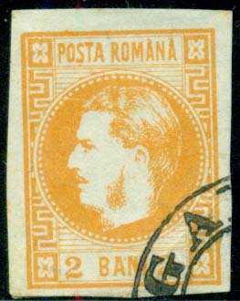 Romania: 1868 (20 Jan). Prince Carol new currency white wove thick paper imperforate 2b yellow, very fine used. SG 65