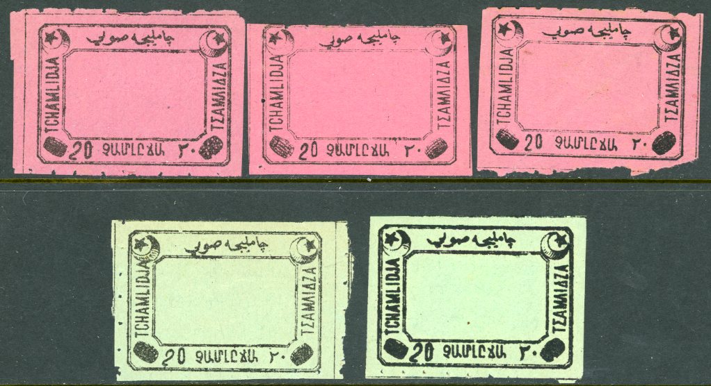 Türkiye: 1868 Public Wells or Fountains Tax five 20pa. TCHAMLIDJA (Çamlıca) imprinted in four languages (Turkish, Armenian, Georgian, Greek) mint o.g. Suleymaniye 1931, 1933.*