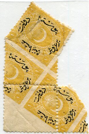 Türkiye: 1868 (28 October). Dulos type 1pi yellow perf. 13 1/2 mint o.g. misperforated multiple error. Illustrated in the specialised catalogue. Unique error. Sg. 37, Isfila 48DE10[RV2]. *