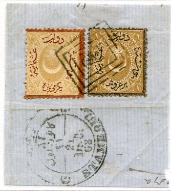 1868 Turkey Dulos 20pa and 1pi Dues on Piece