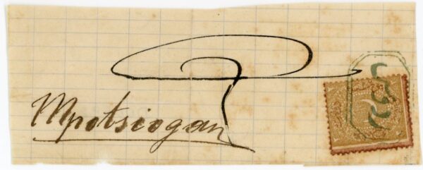 Ottoman Post Offices in Greece: circa 1869 large piece franked with 2pi. of Dulos postage due type stamp tied by octagonal RODOS (vilayet Cezayir-i Bahri Sefid [Archipelgo], A&P type 1, GR #412, RR) handstamp. ex. H. Schaefer