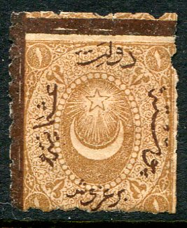 Türkiye: 1870 (June). Dulos postage due type 1pi irregular perf. with brown borders mint o.g. Isfila 67, Sg. D73B. *