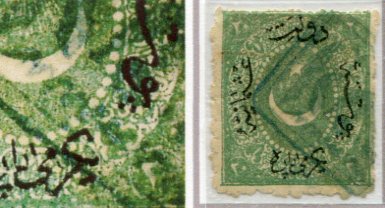 Turkey: 1871-72 issue Dulos type irregular perf. 20pa with Arabic 2 instead of 20 on lower right variety struck by large part double box EDREMID 1288 (vilayet Hudavendigar, A&P type 1, R) handstamp. Isfila 70BE101, Sg. 43