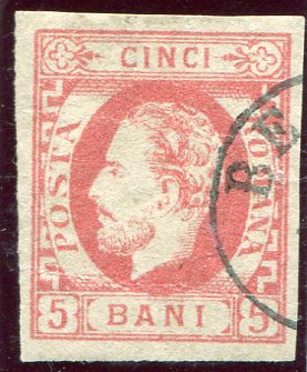 Romania: Prince Carol I 5b rose on white wove paper imperf struck by part datestamp. ex. Dan Walker. Sg. 83b