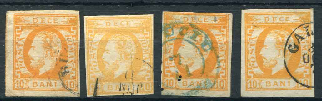 Romania: 1871 (April). Prince Carol with beard issue white wove paper five used 10b with shades. Sg84