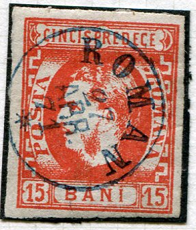 Romania: 1869 (1 April). Prince Carol I 15b red imperf. on white wove paper struck by superb ROMAN 27 April 1871 datestamp. ex. Dr. Hirsch. Sg. 76