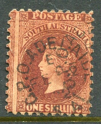 South Australia: 1871 (4 January). 1s. chestnut perf. 10 used. Sg. 98