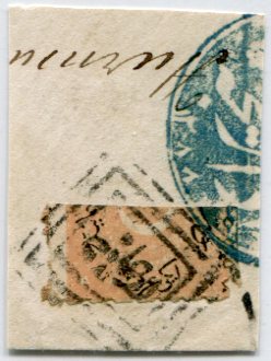Ottoman Empire: 1871 (May). Dulos type bisected 2pi irregular perf. for 1pi value on piece struck by triple box Deraliyye 81 handstamp. Scarce.