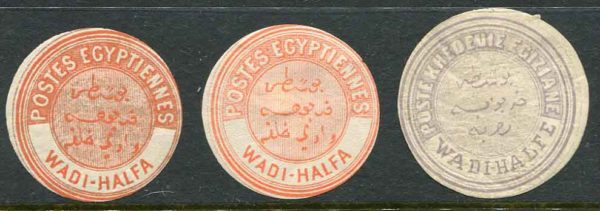 Egypt: 1872 and 1882 three Wadi Halfe or Wadi Halfa, Sudan mint o.g. and unused Interpostal Seals. Scarce. Kehr 225, 721 (2)