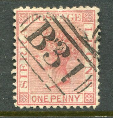 Sierra Leone: 1873 (September). Wmk Crown CC 1d. rose red wmk upright struck by B31 handstamp. Sg. 11