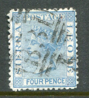 Sierra Leone: 1873 (September). Wmk Crown CC 4d. blue wmk upright struck by faint B31 handstamp. Sg. 14