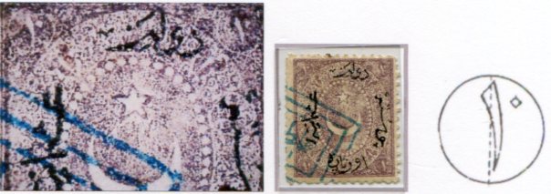 Türkiye: 1873 (April). Dulos type 10pa purple perf. 12 to 13 corrected cliché error by adding dot after 1 struck by part double box handstamp. No unused examples recorded. Isfila 81BE084, Sg. 49b