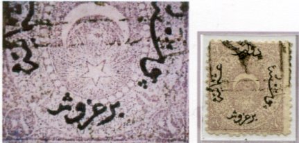 Türkiye: 1873 (April). Dulos type 10pa lilac perf. 12 to 13 overprint inverted and reads “bir gurus” instead of “on para” (1pi instead of 10pa) struck by part double box handstamp. Illustrated in the specialised catalogue. Believed to be only recorded. Isfila 81SE63 [RV1], Sg. 49a