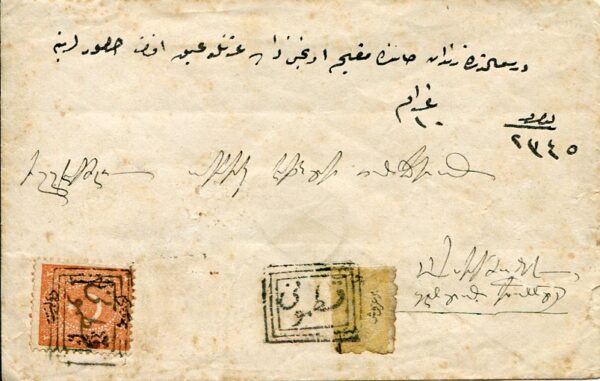 Ottoman Turkey: 1873 (October). Cover to Istanbul franked with 1pi irregular perf. of 1870-72 and 2pi perf. 12 ½ of 1873 Dulos stamps for single weight three piasters 101 to 200 route hours (distance was 120) rate tied by triple box KASTAMUNI (A&P type 2) handstamps. Reverse Stamboul arrival cds.