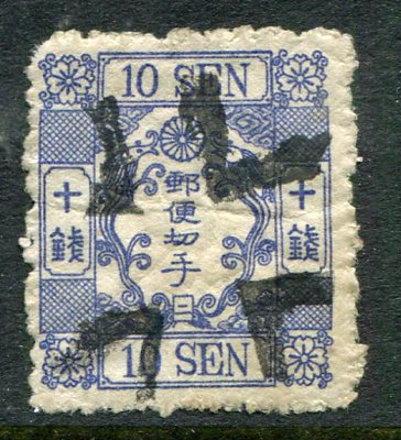 Japan: 1875 (4 February). Cherry Blossom issue 10s. ultramarine syllabic alphabet (plate) 4 used. Sg. 70