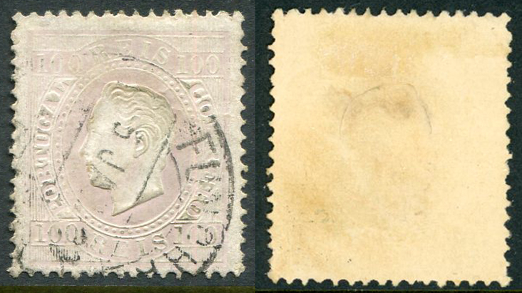 1875 Portugal King Luis 100r perf 13 1/2 Used quantity