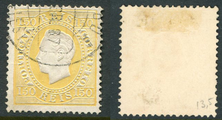 1875 Portugal King Luis 150r perf 13 1/2 Used quantity