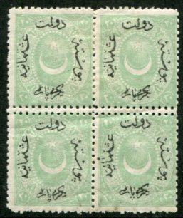 Türkiye: 1875 (February). Dulos type 20pa mint o.g. block of four with double horizontal perforation variety. Isfila 88DE06, Sg. 65. *