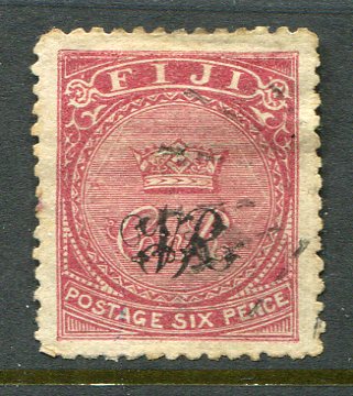 Fiji: 1876 (31 July). V.R. overprinted on wove paper 6d. carmine-rose, fine used. Sg. 30