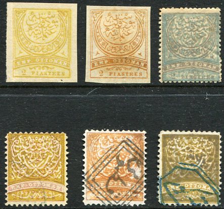 1876 Turkey Empire 2pi Colour Proofs and Background Prints x 6