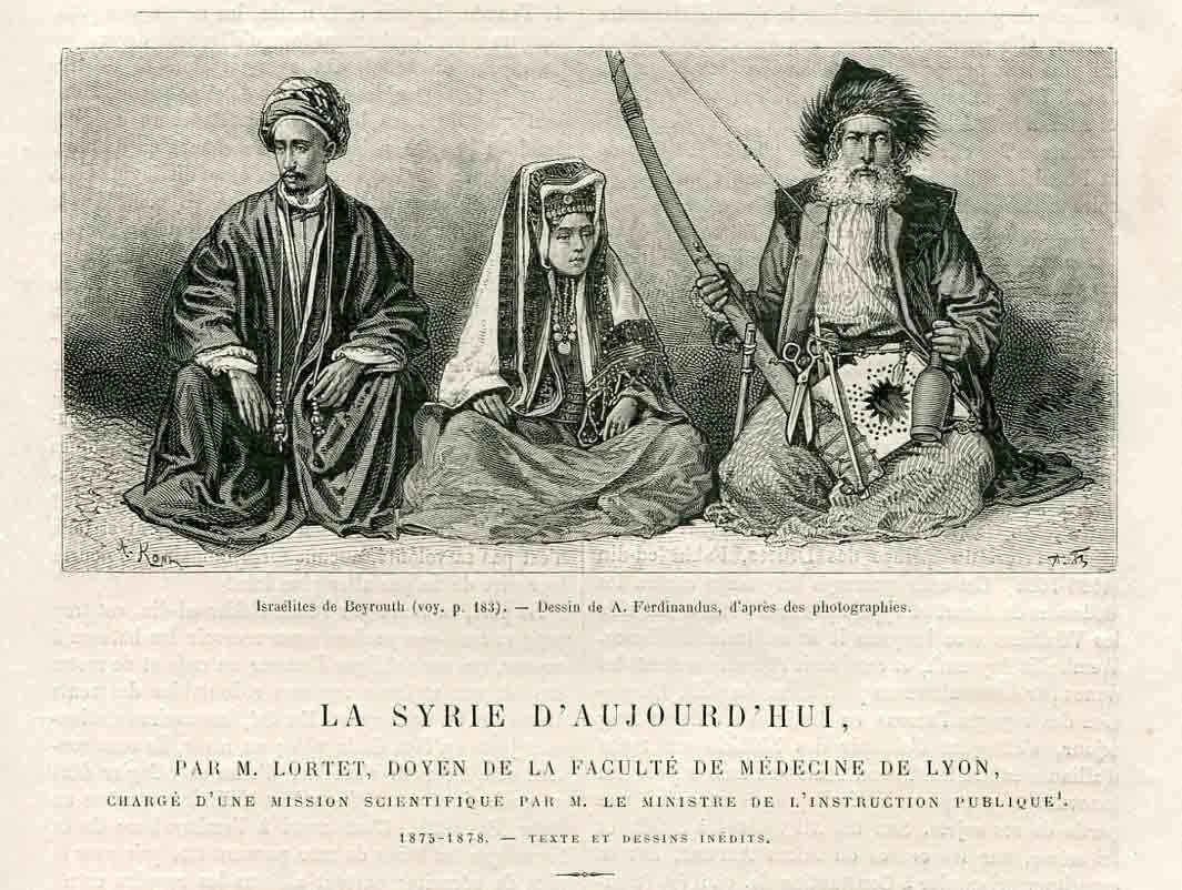 Lebanon: 1878 gravure “Israelites de Beyrouth” by Ferdinandus. 185 x 141mm.