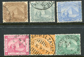 Egypt: 1879 (1 April). Sphinx and Pyramids ordinary paper used set of 6. Sg. 44/49