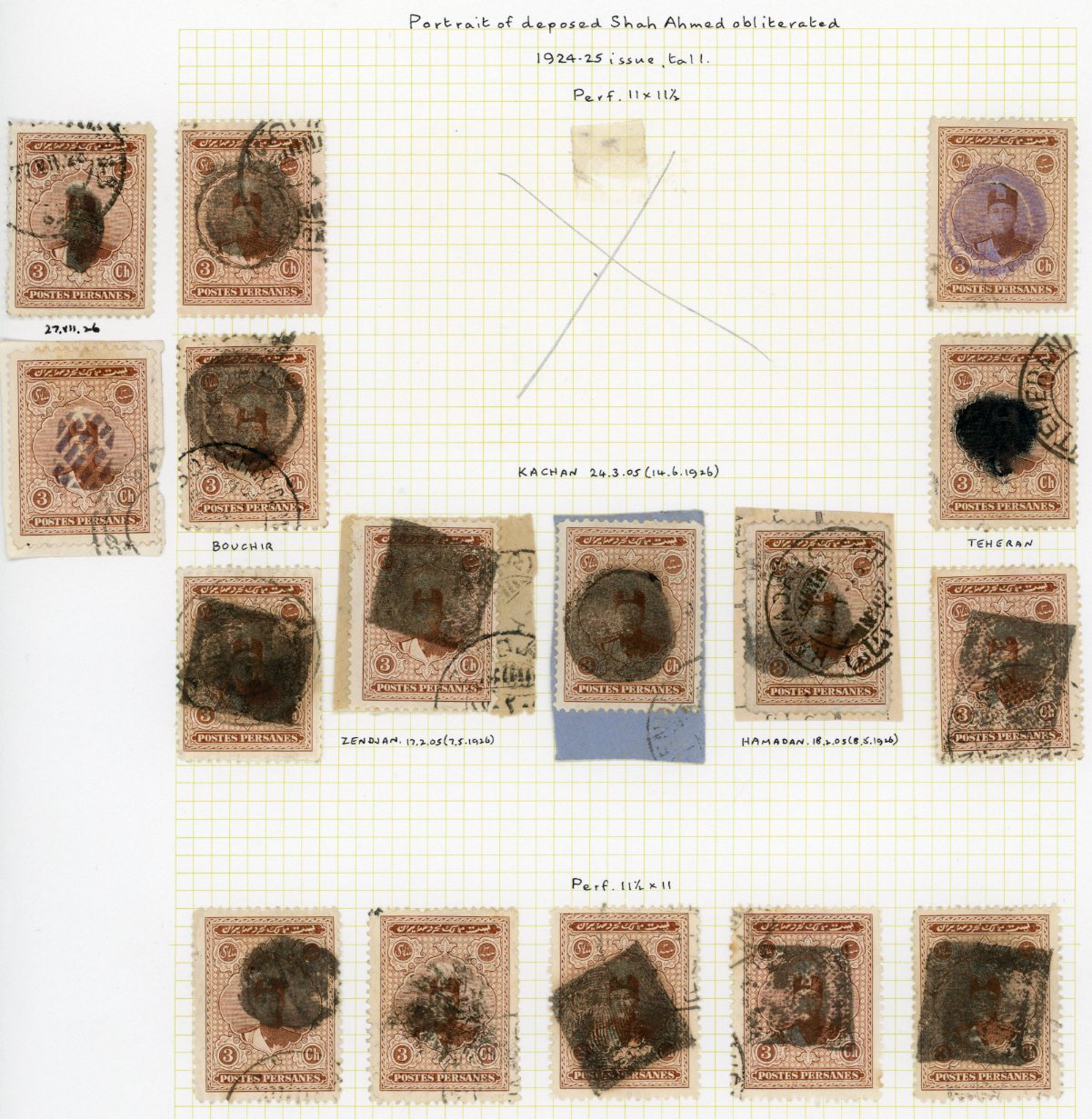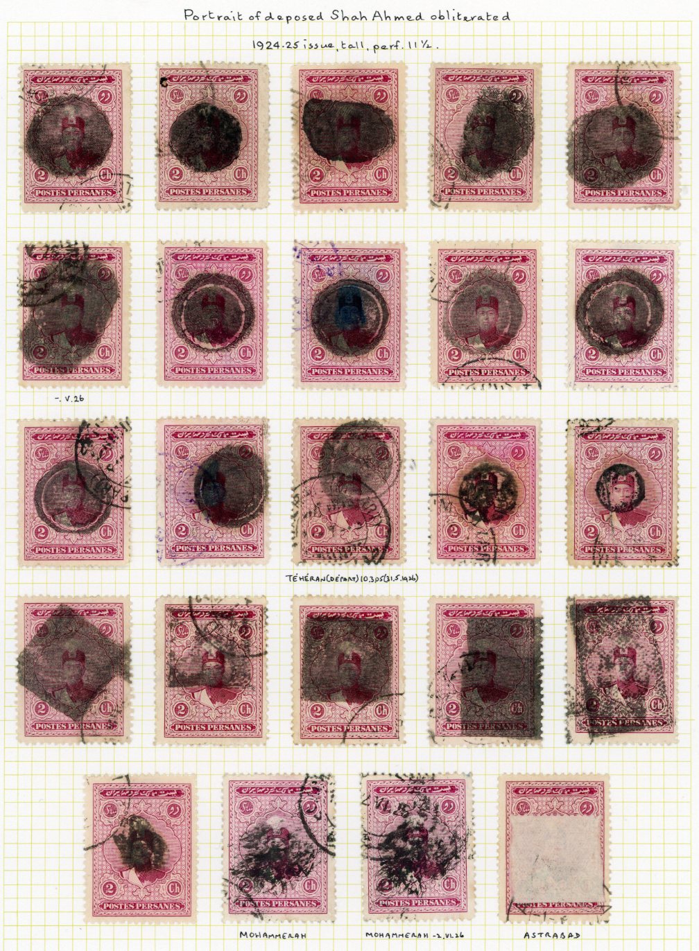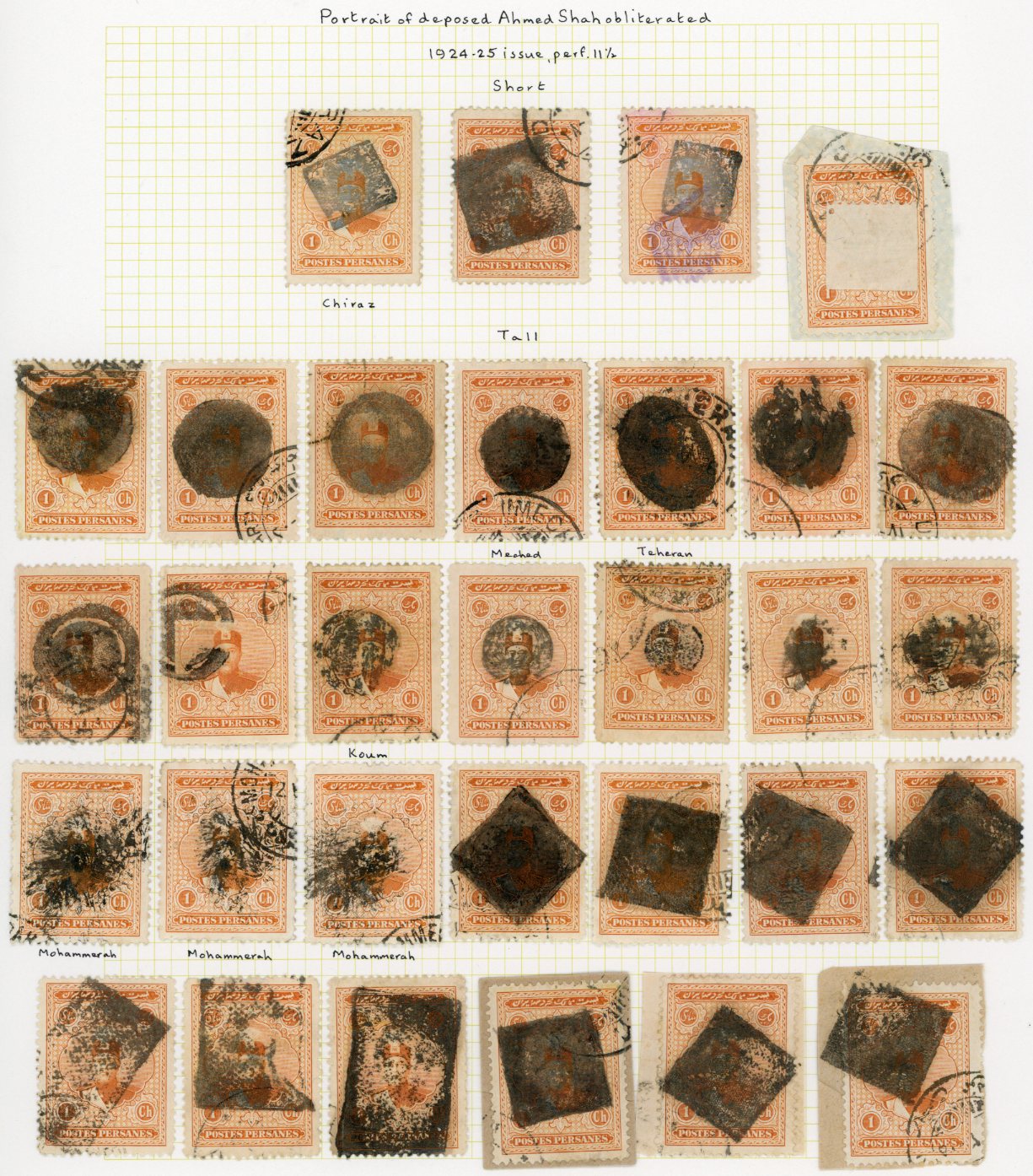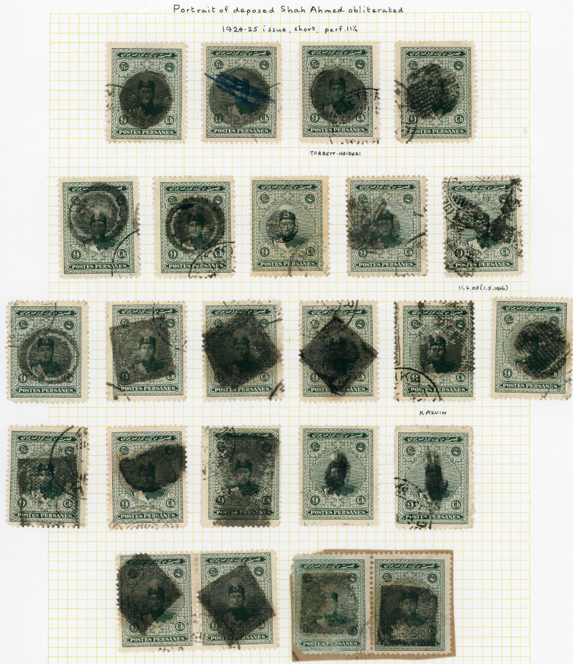 Iran: 1926 Obliterated Stamps of Ahmad Shah Qajar collection of 195 stamps 1ch to 1kr.