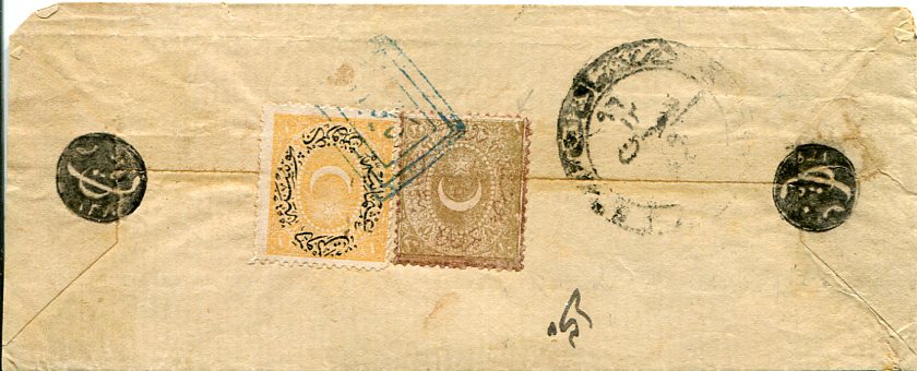 Ottoman Turkey: 1880 (April). Cover to Istanbul franked with 20pa of 1868 with numeral 10 on lower right tablet variety and 1pi of 1876 Dulos stamps for 1 1/2pi single weight up to 100 route-hours letter rate (distance was 87 route-hours) tied by triple box ANKARA 81 (A&P type 3) handstamp and 25 April arrival cds.