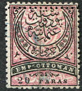 Ottoman Empire: 1880 (March). UPU Empire issue 20pa perf. 13 1/4 used with double perforation on top error.