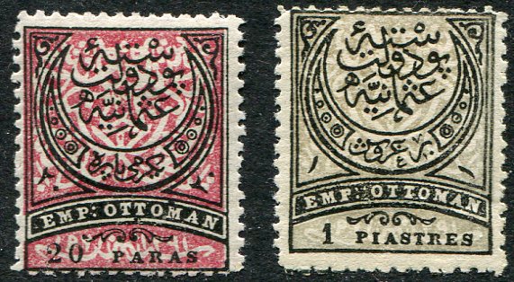 Ottoman Empire: 1880 (March). UPU Empire issue perf. 13 1/4 mint o.g. set of two. Isfila 110/111