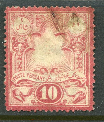 Iran: 1881 (May-June). Lithographed dual currency Mitra issue 2sh / 10c perf. 13 used. Sold as genuine.