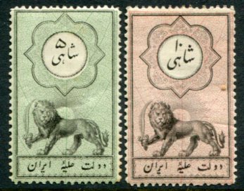 Iran: 1881 Qajar period unissued 5ch and 10ch mint o.g. revenues. *