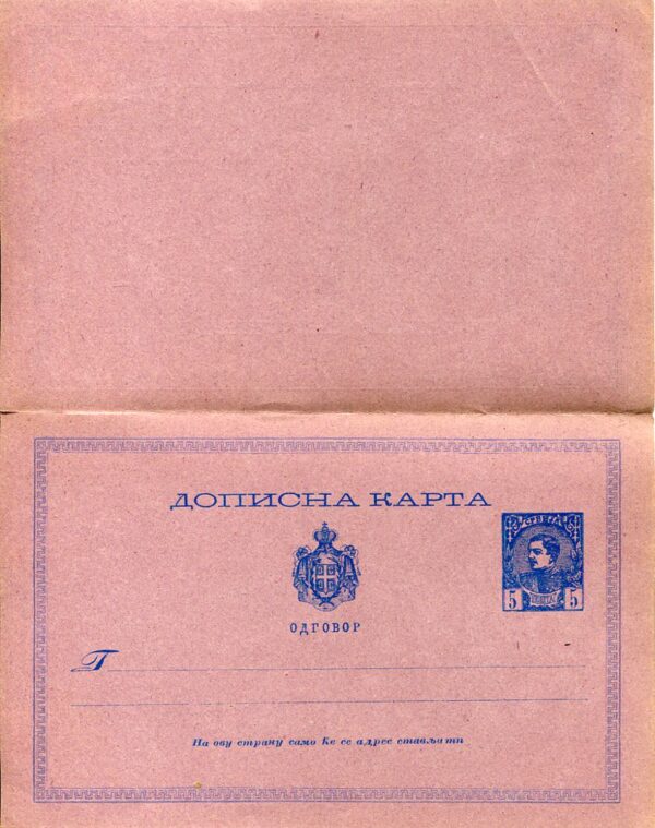Serbia: 1881 unused 5pa thin paper reply postal stationery card.
