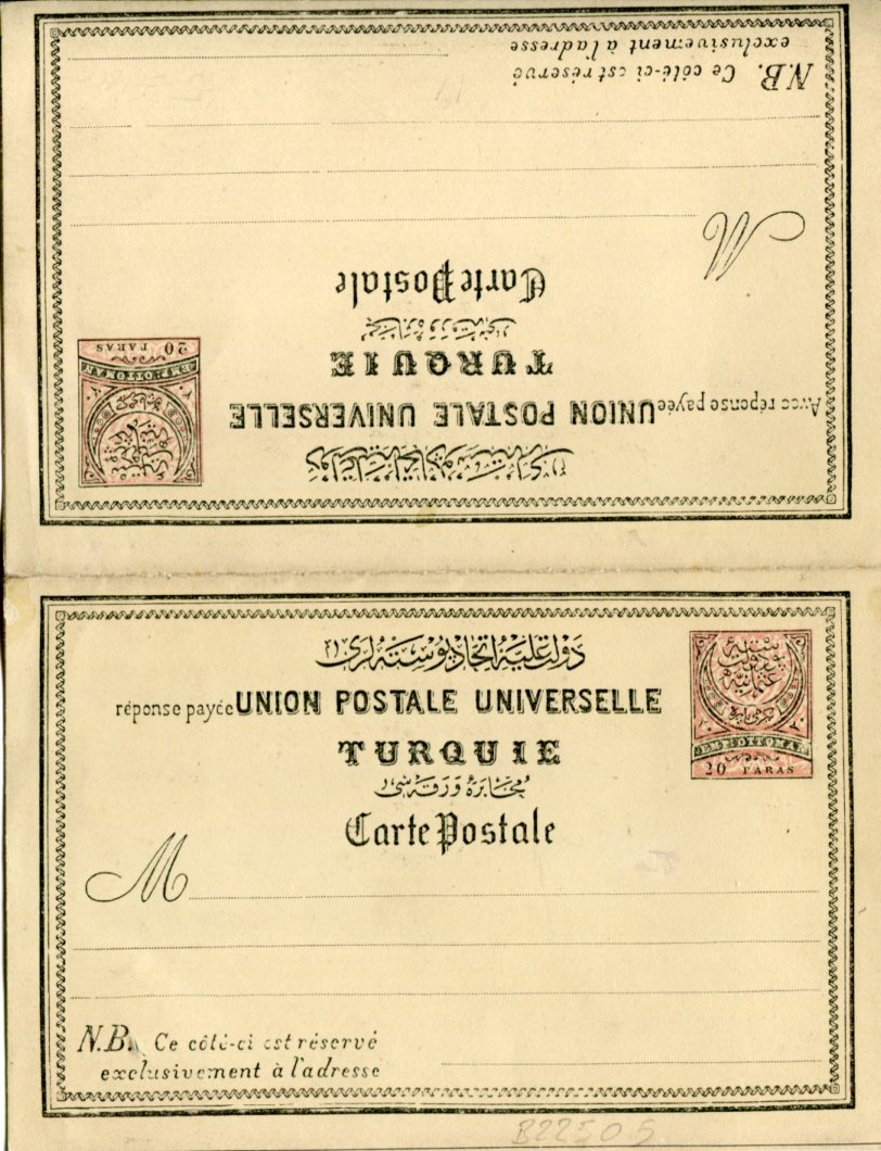 1881 Turkey 20pa Reply UPU Postal Card