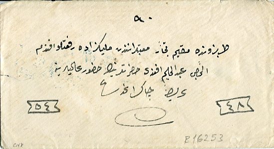 Ottoman Empire: 1881 (19 April). Cover to Trabzon franked on arrival with 1pi of 1876 and 20pa of 1877 Dulos type stamps for 1 1/2pi single weight letter rate tied by TREBIZONDE * TURQUIE (A&P type 5, RR) datestamps.