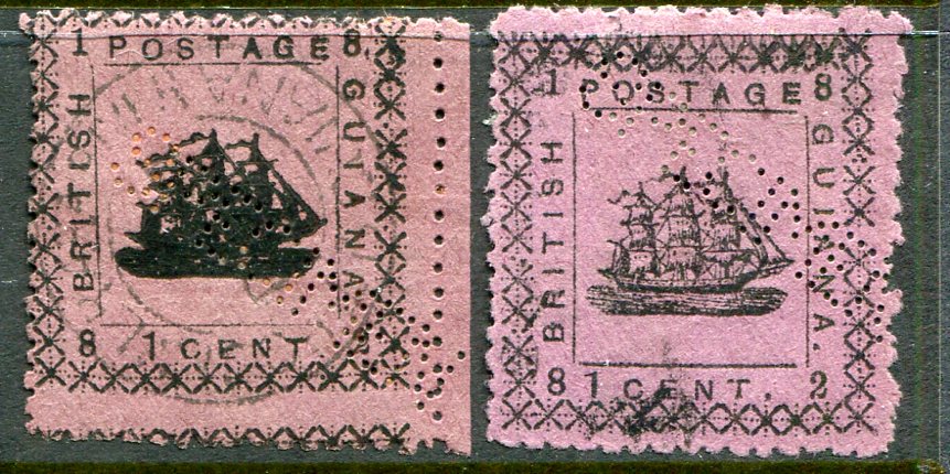 1882 British Guiana 1c perforated Specimen Used Types quantity