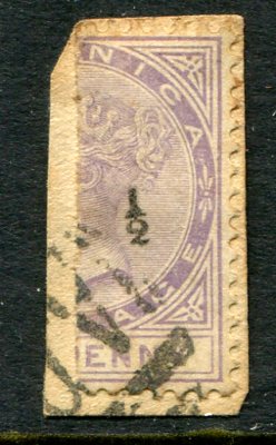 Dominica: 1882 vertically bisected and 1/2 surcharged on half 1d. on piece struck by part cancellation. Sg. 10