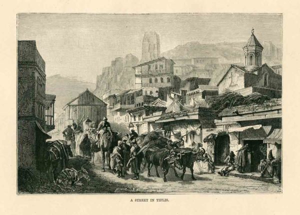 Georgia: Circa 1885 gravure titled A STREET IN TIFLIS. Overall size with margins 268x178mm