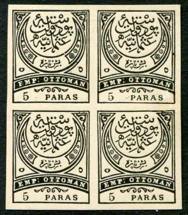1886 Turkey Empire 5pa Block of 4 Carton Essay unique (*)