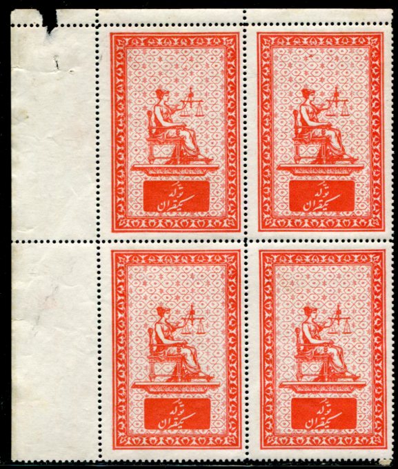Iran: 1886 Civil Use Revenues 1Kr unmounted mint marginal block of four. **
