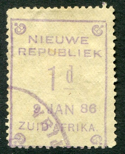 South Africa – New Republic: 1886 (9 January). Without arms 1d on yellow paper, fine used. 69 printed with this date. Sg. 2