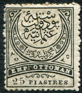 Türkiye: 1886 (13 February). UPU Empire issue 25pi black lilac perf. 13 1/2 mint o.g. Isfila 124, Sg. 100 *
