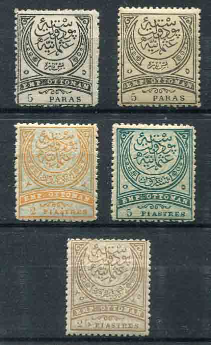Ottoman: 1886 (1 April). UPU Empire postage stamps perf. 13 1/4 mint o.g. set of four with additional 5pa yellowish thick paper. Isfila 125/128, 125 KV09