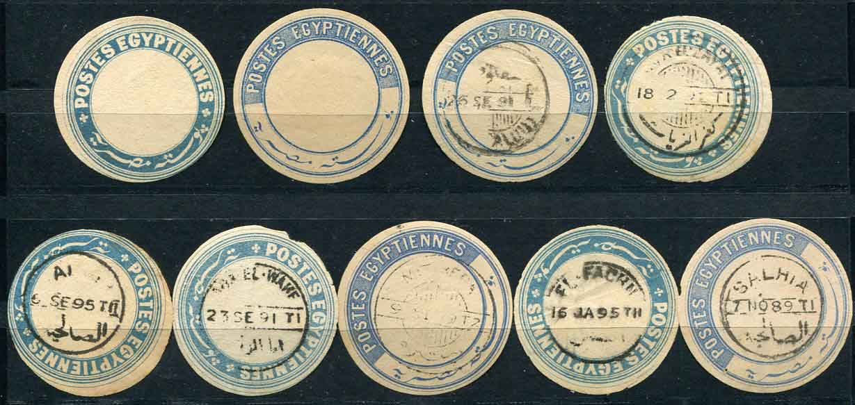 Egypt: 1887 – 1890 blank and used nine interpostal seals. Kehr & Cockrill types X, XI