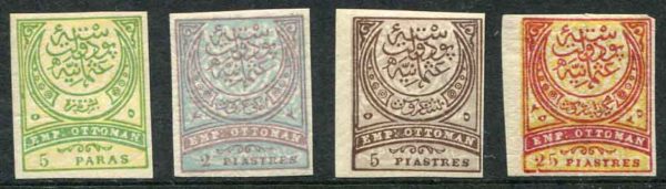 Türkiye: 1888 (13 March). UPU Empire imperforate unmounted mint set of four (25pi lightly hinged mint o.g). Isfila 129/132 DE11 * / **