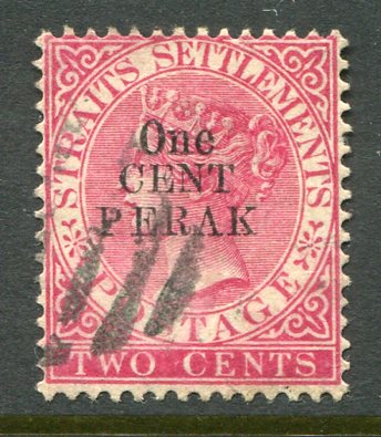 Malaysian States – Perak: 1889 overprinted on Strait Settlements 1c on 2c used. Sg 37