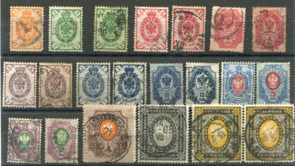 Russia: 1889-92 horizontally laid paper complete used set with pair of 7r and some additional shades . SG 50/65