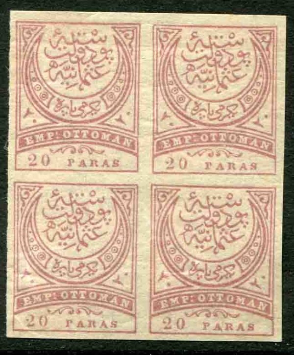 1890 Turkey Empire 20pa Imperf Block of 4 *